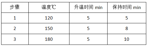 將經(jīng)過烘干并研磨成粉末狀的玉米樣品0.35克準(zhǔn)確稱取至微波消解罐中,加入8毫升 硝酸和2毫升 高氯酸溶液,封蓋后放入微波消解儀內(nèi),同時進行兩份空白對照。按以下程序進行密閉消解。消解完成后,將消解罐冷卻至室溫,取出后將消化液轉(zhuǎn)移到25毫升容量瓶中,用超純水稀釋至刻度,備用。