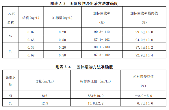 注1:如固體廢物中鎳或銅的含量較高,試樣消解后定容體積可根據(jù)實(shí)際情況確定。
