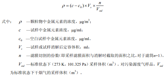 9.1 結(jié)果計(jì)算 顆粒物中金屬元素的濃度按下列公式計(jì)算: