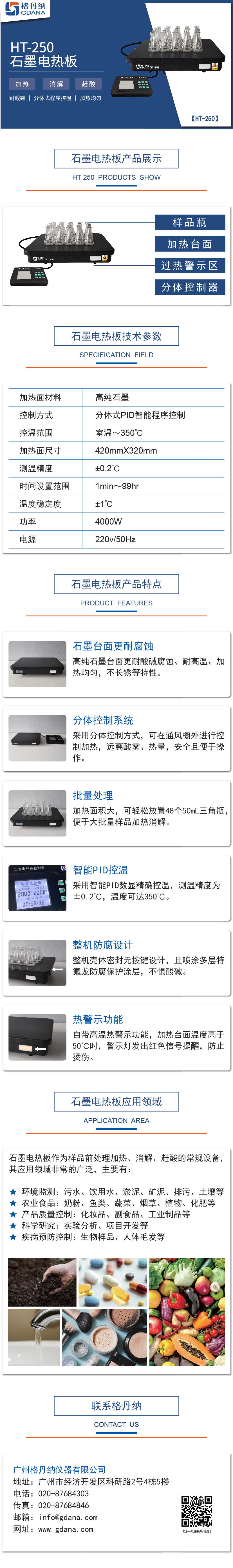 HT-250石墨加熱板(也稱為石墨電熱板)是元素分析樣品前處理實(shí)驗(yàn)中進(jìn)行加熱、消煮、趕酸的通用實(shí)驗(yàn)儀器,格丹納石墨加熱板采用高純石墨材質(zhì)加熱臺(tái)面,加熱均勻;同時(shí)可進(jìn)行批量樣品消解處理,大大提高工作效率;PID分體式智能控制,實(shí)驗(yàn)人員可遠(yuǎn)離酸霧及熱量實(shí)驗(yàn)安全可靠。